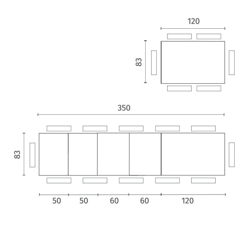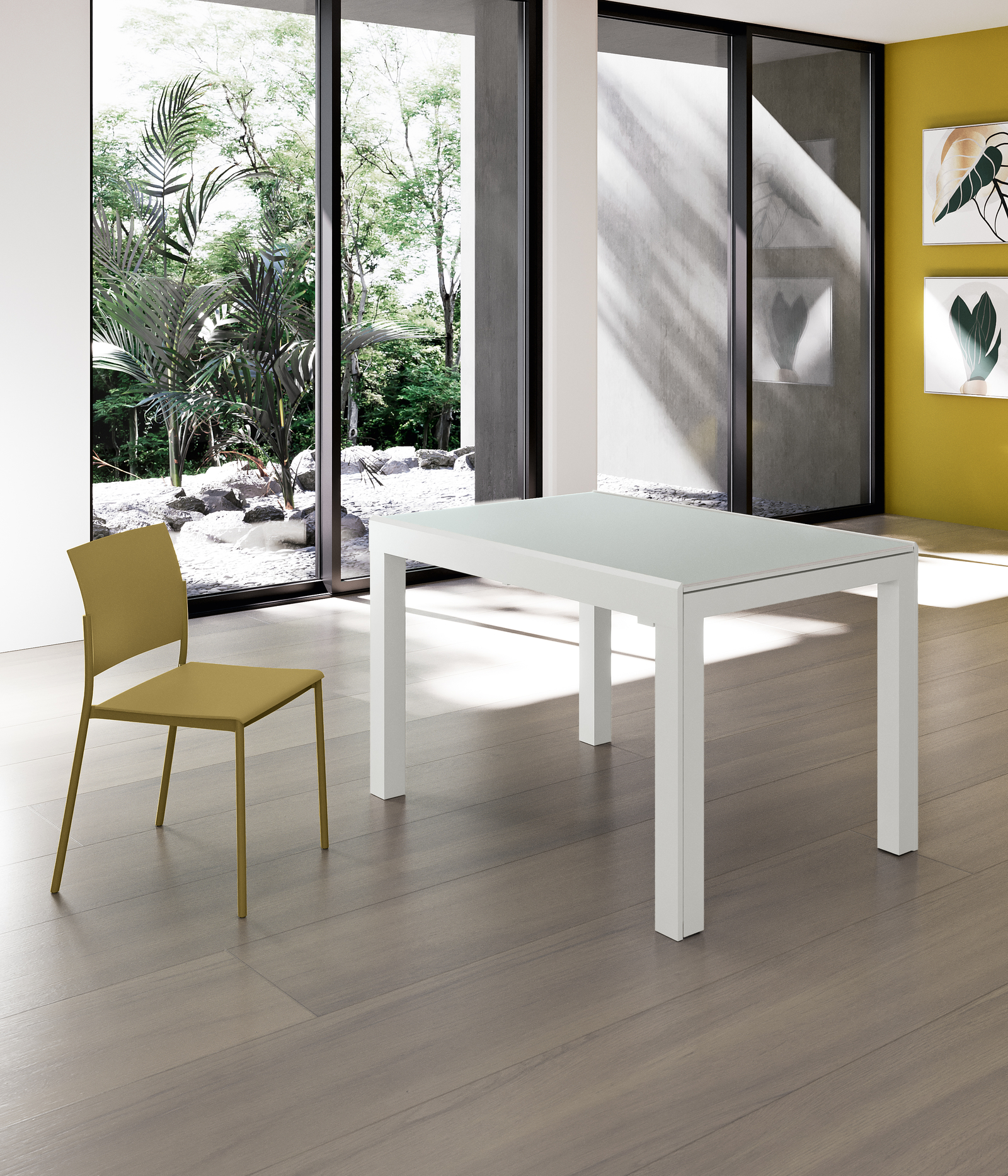 Top: Vetro temperatoAllunghe: Vetro temperato & MelaminicoGambe: Metallo