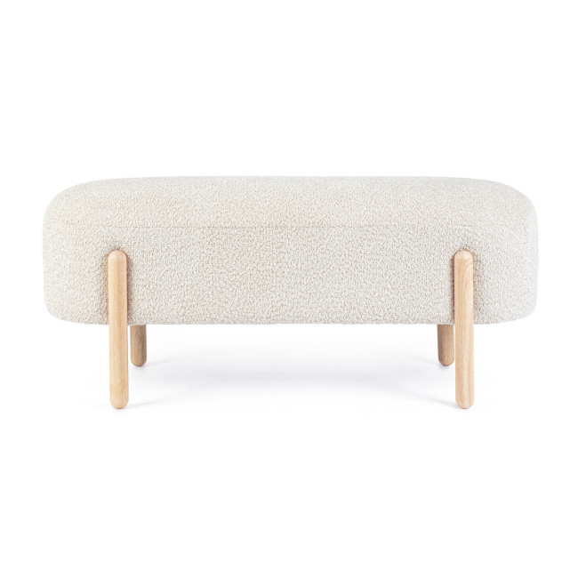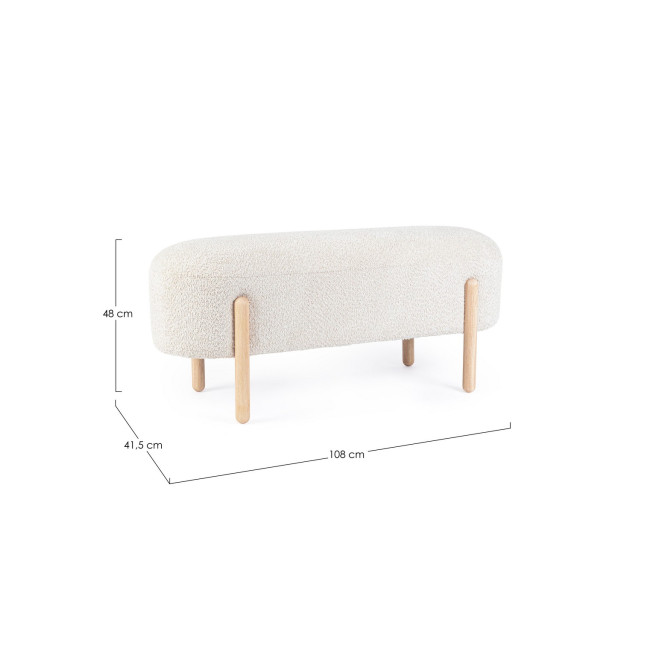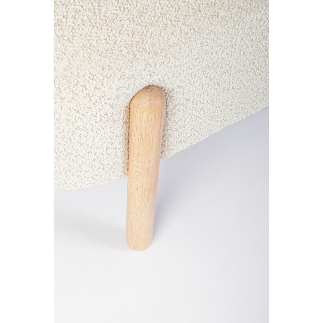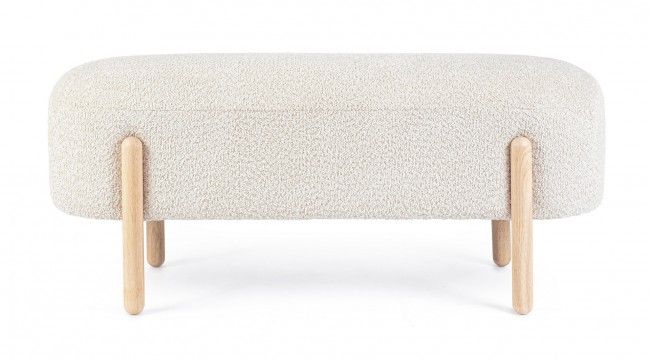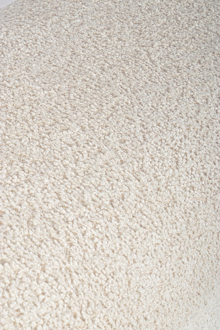 STRUTTURA IN COMPENSATO. GAMBE IN LEGNO RUBBER WOOD. RIVESTIMENTO SEDUTA IN POLIESTERE, EFFETTO BOUCLE’. IMBOTTITURA IN SCHIUMA POLIURETANICA (DENSITA’ 25KG/M3). GAMBE DA ASSEMBLARE.