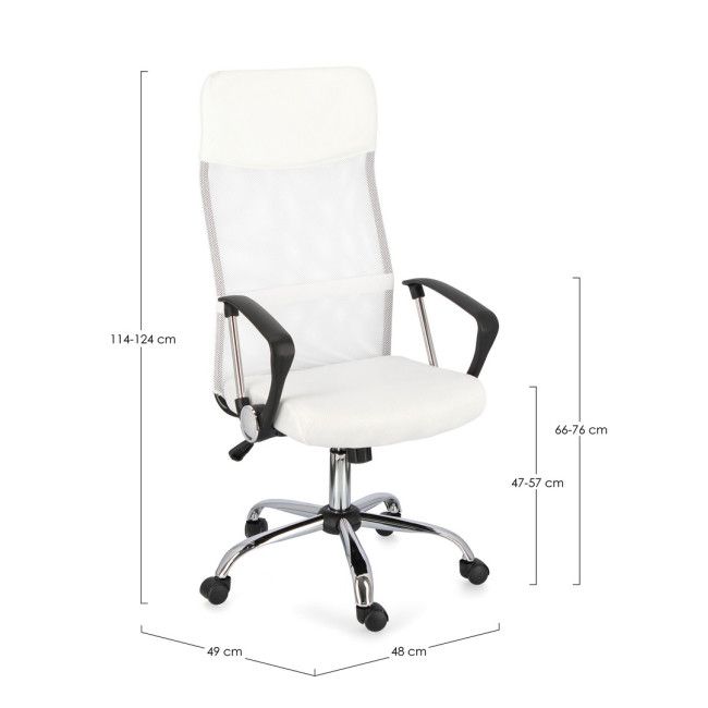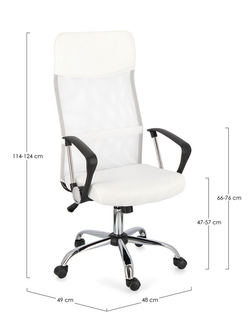 BASE IN ACCIAIO CROMATO √ò60CM. RUOTE IN NYLON. SEDUTA IMBOTTITA E RIVESTITA IN TESSUTO 100% POLIESTERE E TESSUTO A RETE. BRACCIOLI IN PLASTICA (PP)E ACCIAIO CROMATO. ALTEZZA REGOLABILE. DA ASSEMBLARE.