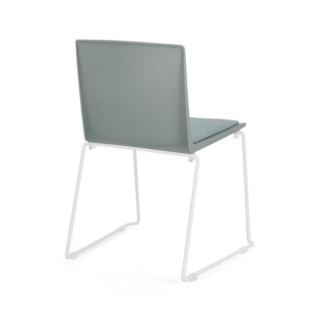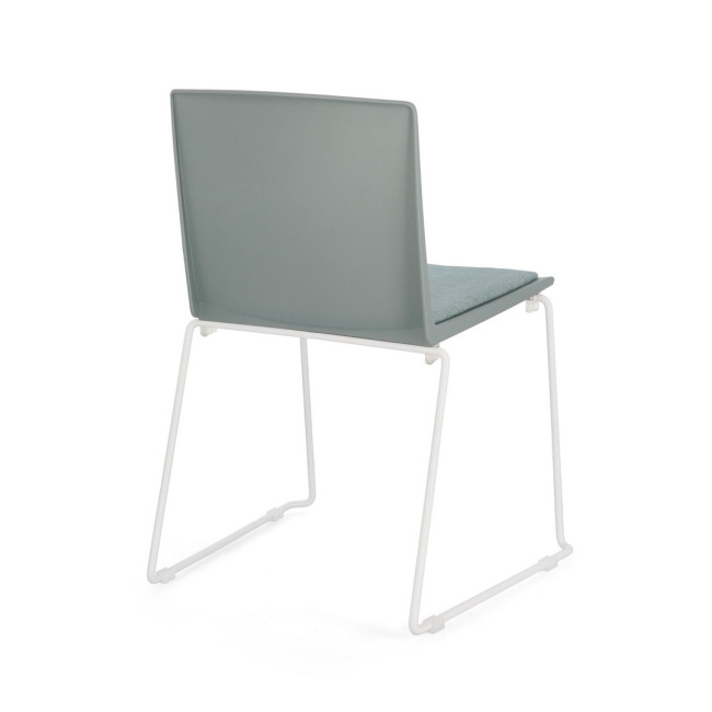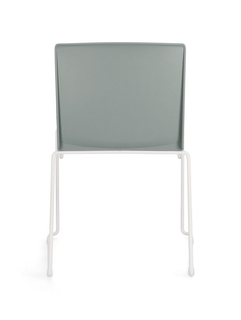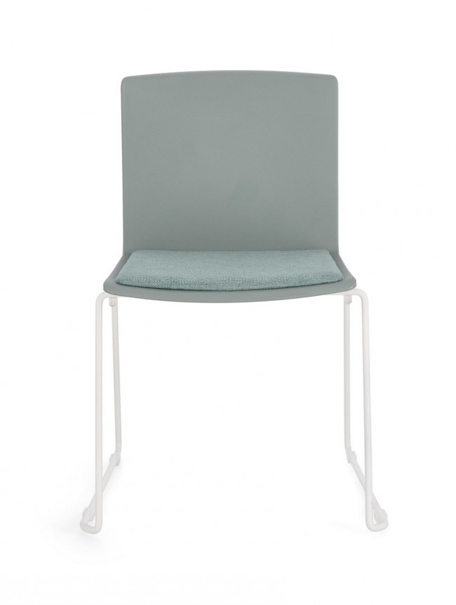 SEDUTA IN PLASTICA (PP). CUSCINETTO SEDUTA IN POLIESTERE. GAMBE IN ACCIAIO VERNICIATE A POLVERE EPOSSIDICA. IMPILABILE.