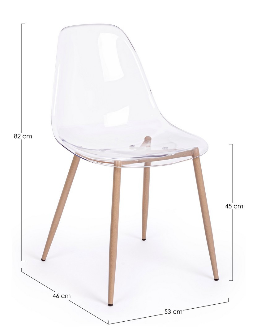 GAMBE IN ACCIAIO VERNICIATE EFFETTO LEGNO NATURALE. SEDUTA IN POLICARBONATO (PC). GAMBE DA ASSEMBLARE.