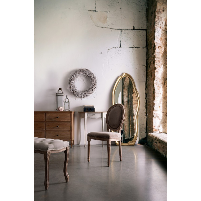 STRUTTURA IN LEGNO DI BETULLA. SEDUTA RIVESTITA IN POLIESTERE, EFFETTO VELLUTO.