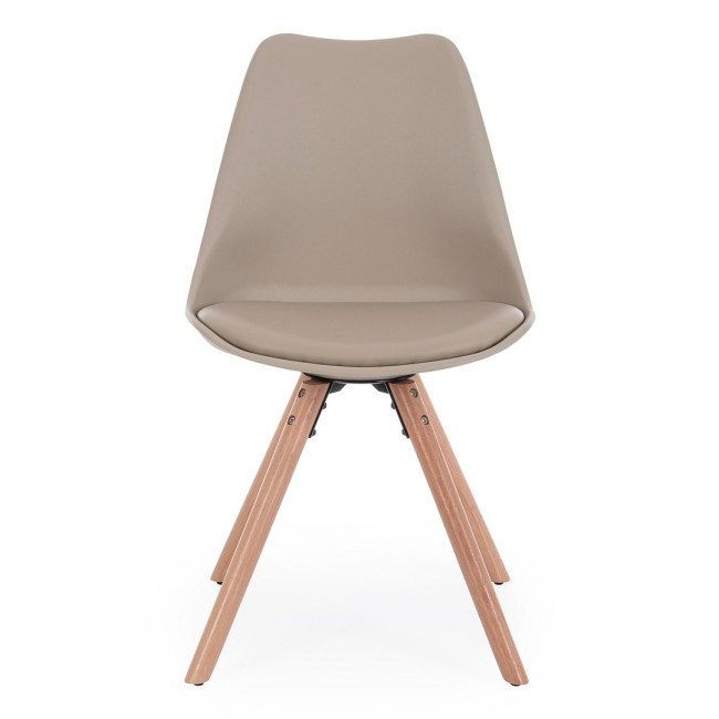 GAMBE IN LEGNO DI FAGGIO. SEDUTA E SCHIENALE IN PLASTICA(PP). CUSCINO DELLA SEDUTA IN SIMILPELLE. GAMBE DA ASSEMBLARE.