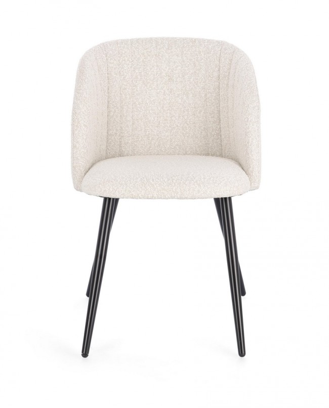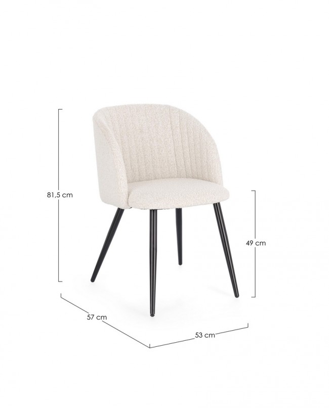 STRUTTURA IN COMPENSATO. GAMBE IN ACCIAIO VERNICIATO A POLVERE. IMBOTTITURA IN SCHIUMA POLIURETANICA DENSITA’ 22 KG/M3. RIVESTIMENTO IN 95% POLIESTERE 5% ACRILICO EFFETTO BOUCLE’ . GAMBE DA ASSEMBLARE.