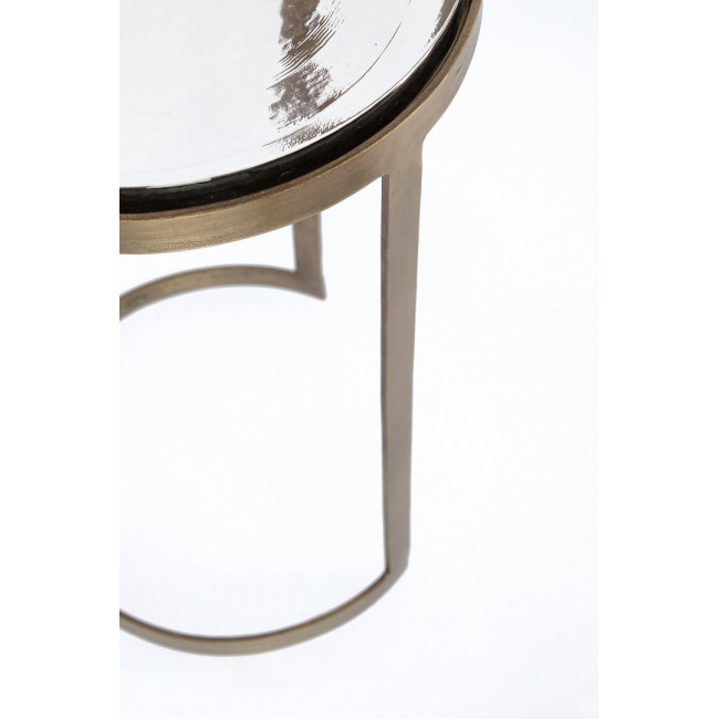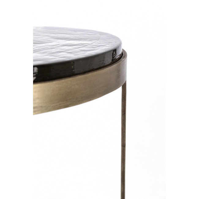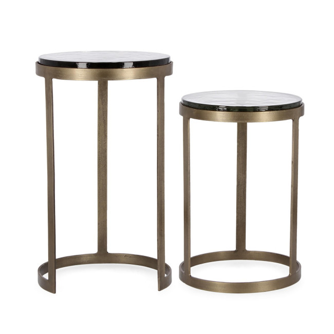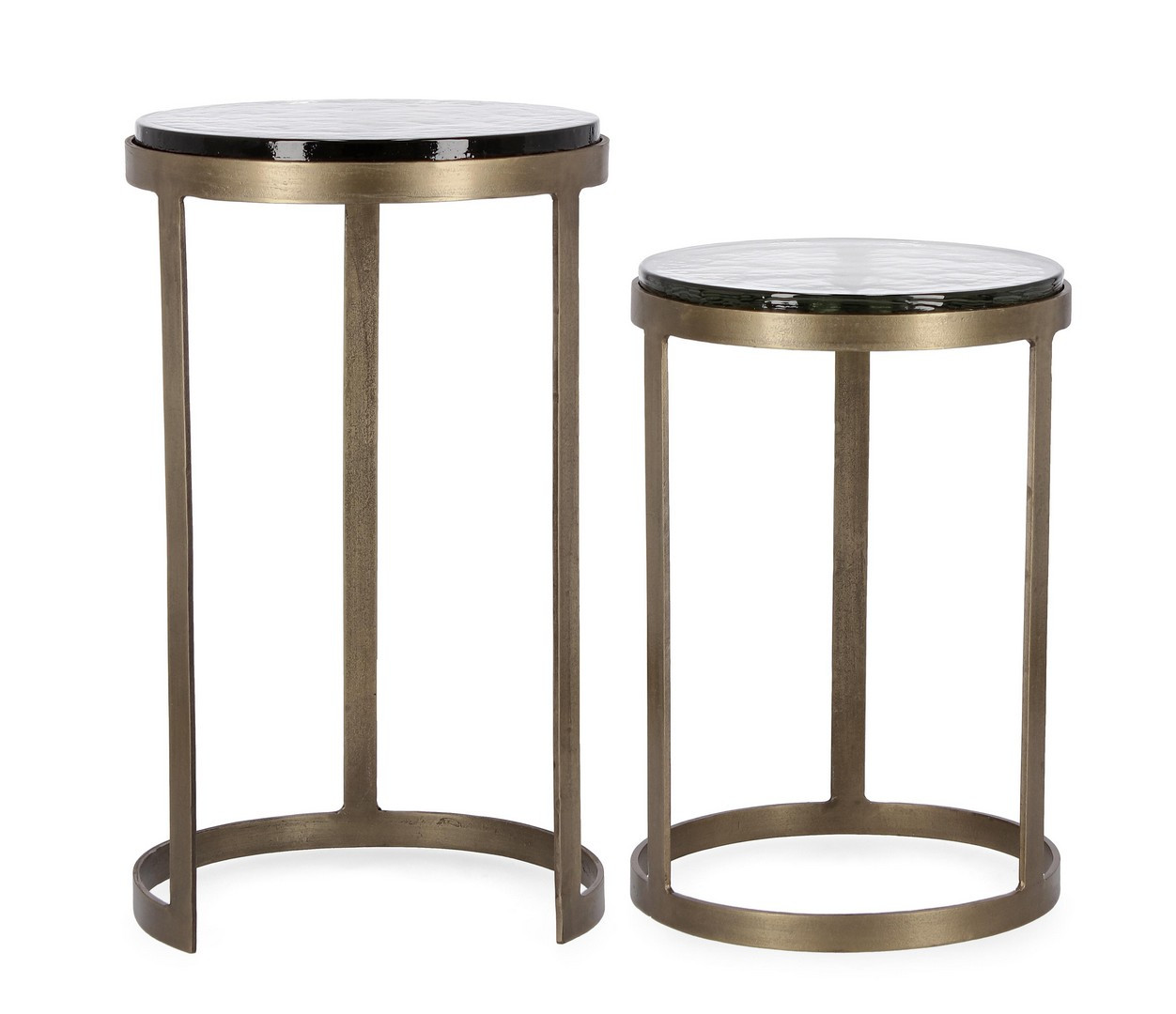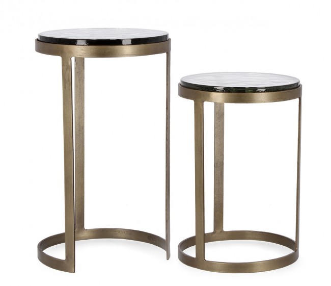 ACCIAIO CON FINITURA PLACCATA ED ANTICATA. PIANO IN VETRO NATURALE LAVORATO A MANO (SPESSORE 15-18MM). LE FORME ORIGINALI CREATE DAL VETRO SONO SOLO INDICATIVE, TUTTI I PRODOTTI SARANNO DIVERSI L’UNO DALL’ALTRO, CON MISURE E COLORAZIONI LEGGERMENTE DIFFERENTI.