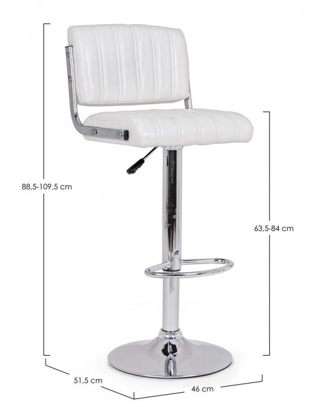 STRUTTURA IN ACCIAIO CROMATO. BASE √ò 38CM. IMBOTTITURA IN SCHIUMA POLIURETANICA NUOVA E RICICLATA DENSITA’ 26 KG/M3. RIVESTIMENTO IN SIMILPELLE. ALTEZZA REGOLABILE. DA ASSEMBLARE.