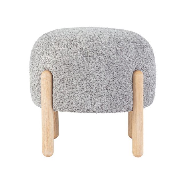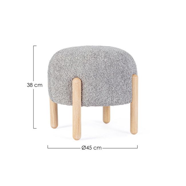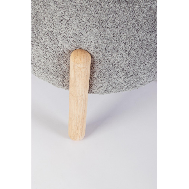 STRUTTURA IN COMPENSATO. GAMBE IN LEGNO RUBBER WOOD. RIVESTIMENTO SEDUTA IN POLIESTERE, EFFETTO BOUCLE’. IMBOTTITURA IN SCHIUMA POLIURETANICA (DENSITA’ 25KG/M3). GAMBE DA ASSEMBLARE.