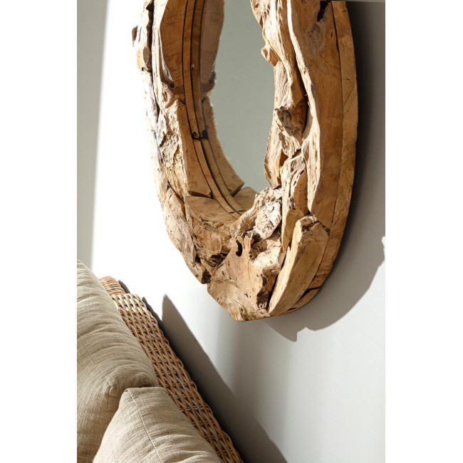 RADICI DI TEAK CON FINITURA RUSTICA NATURALE E VETRO. LE FORME ORIGINALI CREATE DAL LEGNO SONO SOLO INDICATIVE, TUTTI I PRODOTTI SARANNO DIVERSI L’UNO DALL’ALTRO. MISURA SPECCHIO:√ò63