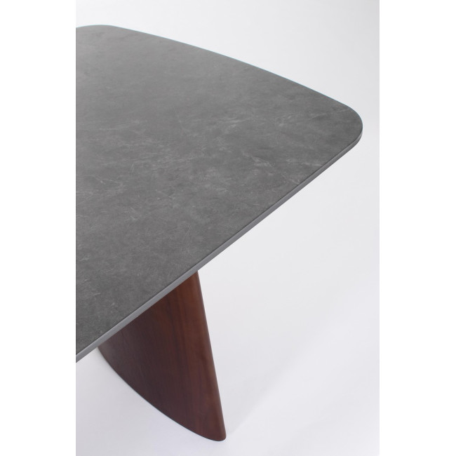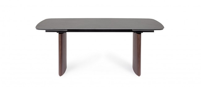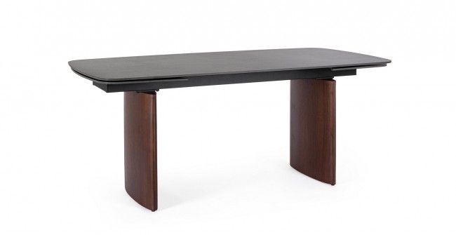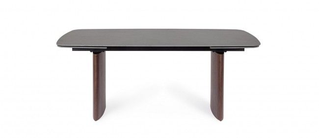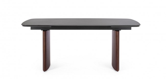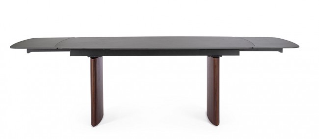 PIANO IN GRES PORCELLANATO CON EFFETTO MARMO. SUPPORTO PIANO IN ACCIAIO VERNICIATO A POLVERE EPOSSIDICA. GAMBE IN MDF IMPIALLACCIATO LEGNO DI NOCE. PROLUNGHE INDIPENDENTI. PIEDINI REGOLABILI. GAMBE DA ASSEMBLARE.