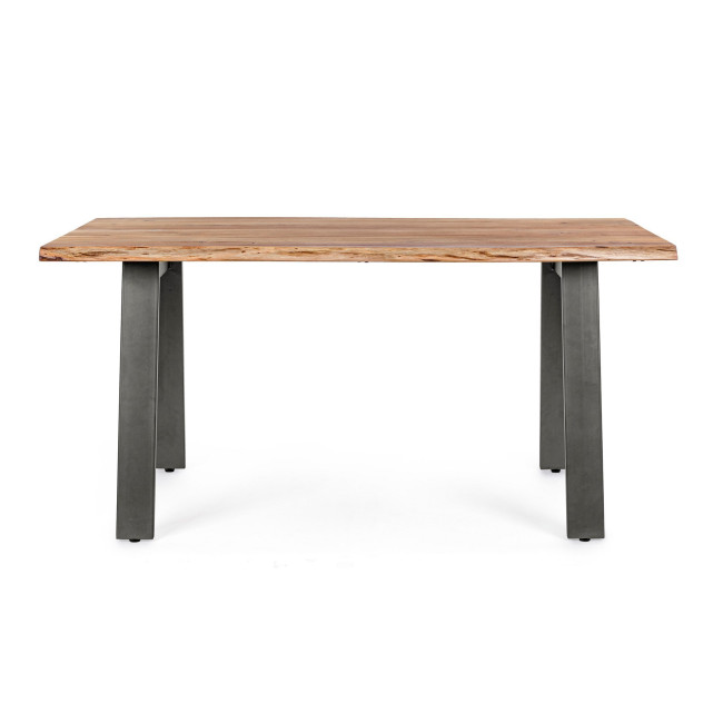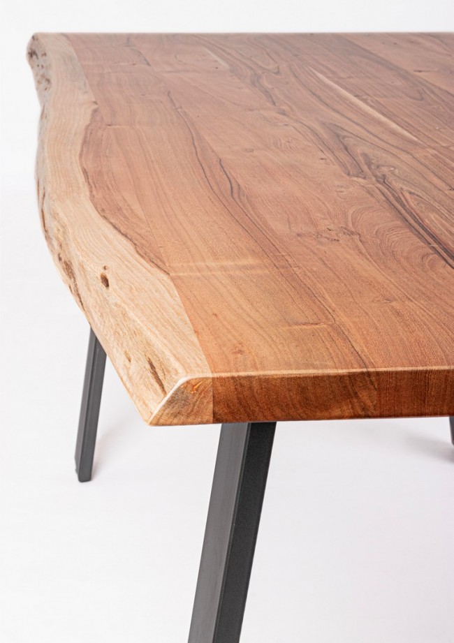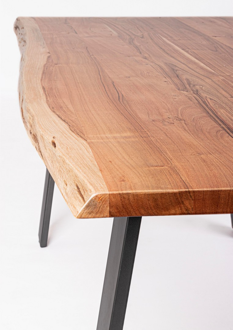 GAMBE IN ACCIAIO VERNICIATO A POLVERE EPOSSIDICA. PIANO IN LEGNO DI ACACIA CON BORDI IRREGOLARI (EFFETTO LEGNO VIVO). FINITURA A BASE DI VERNICE POLIURETANICA. ESSENDO UN PIANO LAVORATO A MANO, LE FORME E LE MISURE DEL LEGNO SONO SOLO INDICATIVE. TUTTI I PRODOTTI SARANNO DIVERSI L’UNO DALL’ALTRO. GAMBE DA ASSEMBLARE.