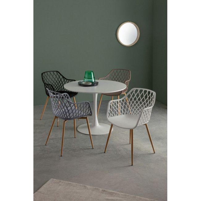 BASE IN ACCIAIO VERNICIATO A POLVERE. TOP IN MDF, RIVESTIMENTO IN POLIURETANO (PU). DA ASSEMBLARE.