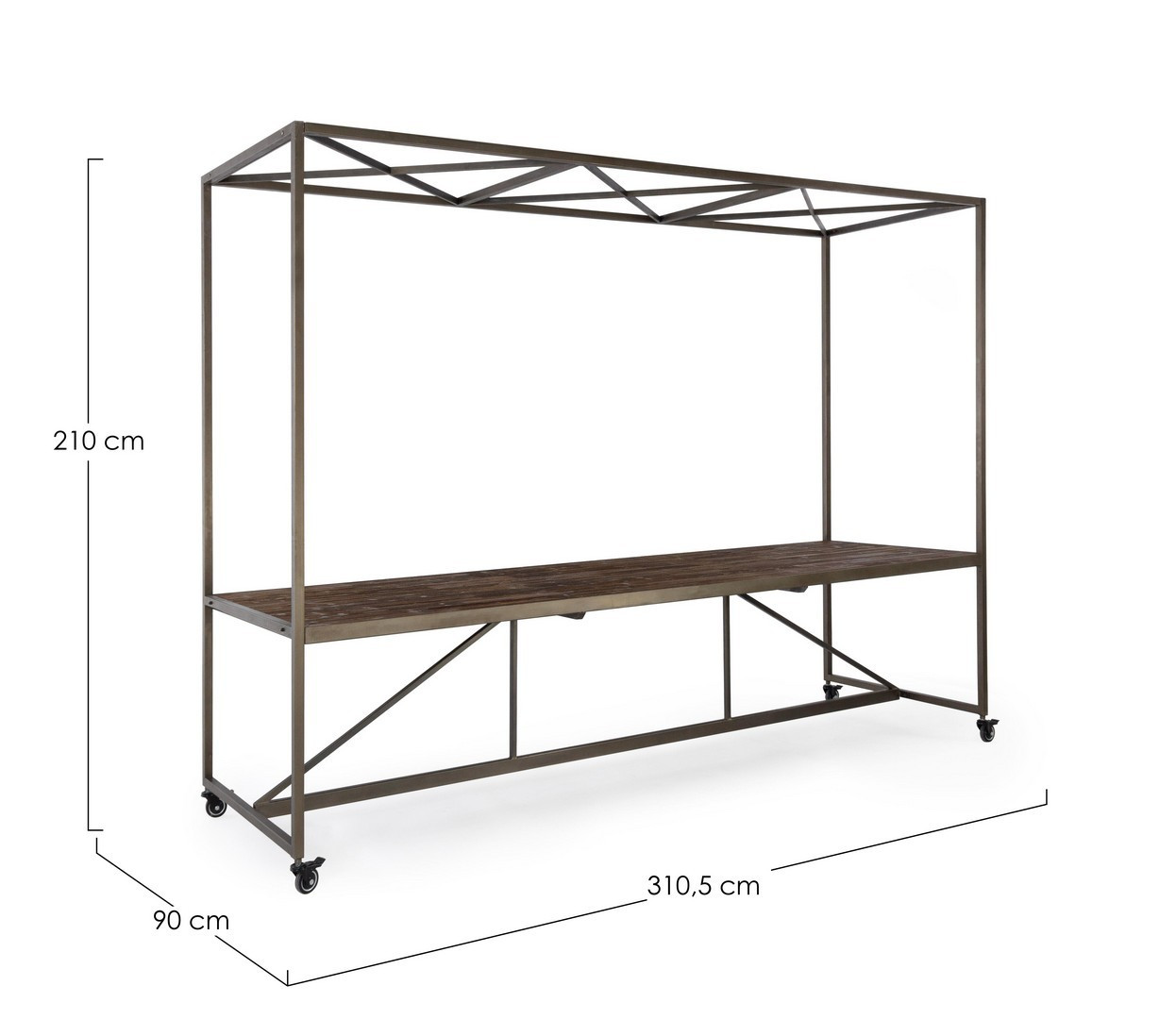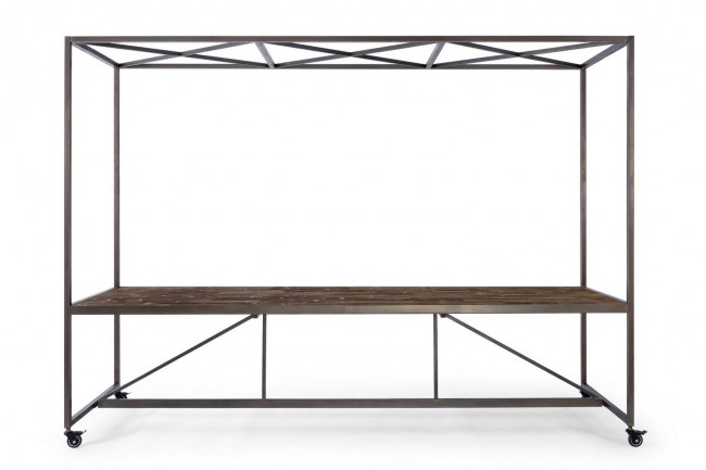 STRUTTURA IN ACCIAIO VERNICIATO A POLVERE. PIANO IN LEGNO DI ABETE E MDF. RUOTE IN GOMMA. DA ASSEMBLARE